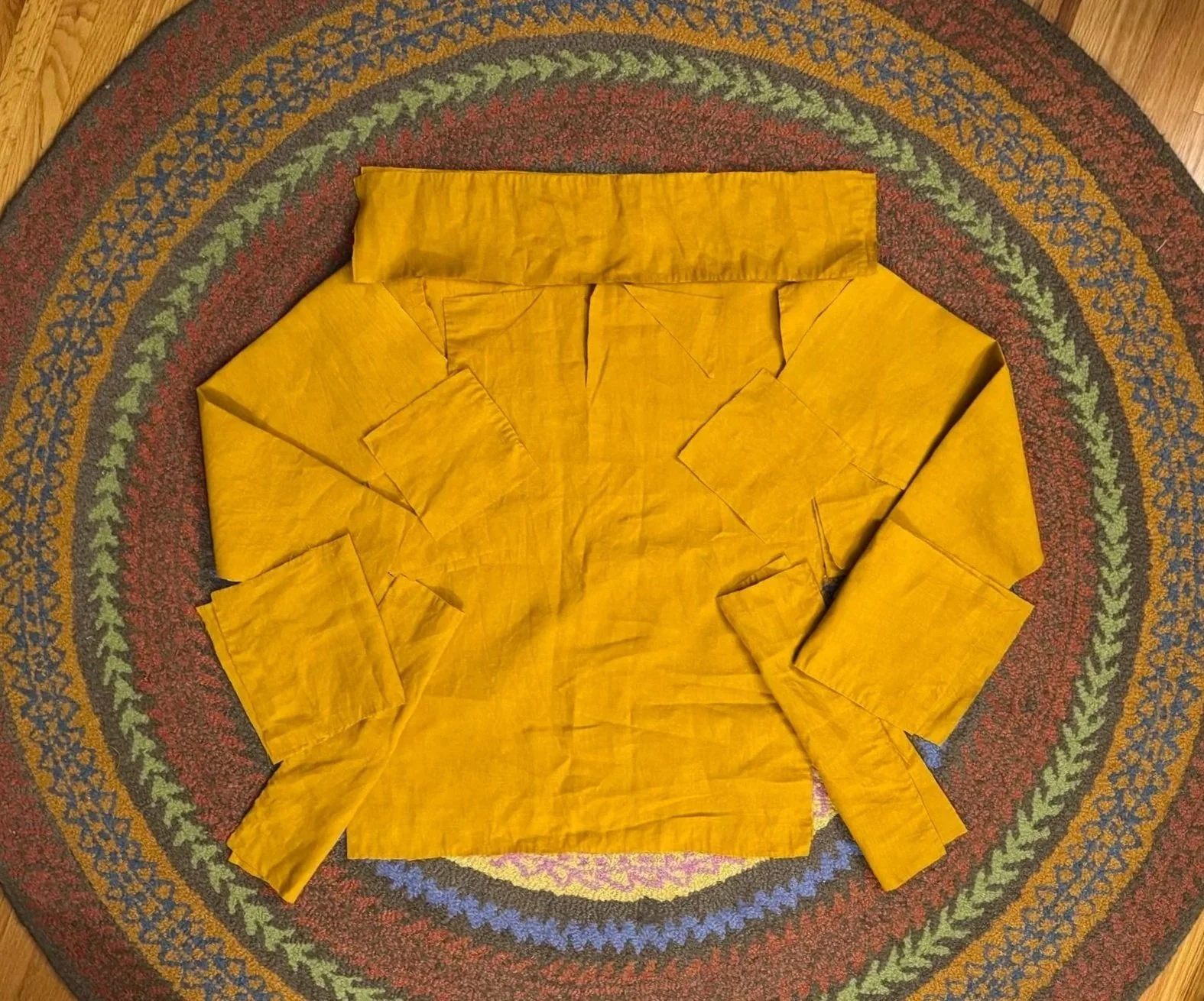 All the pieces are cut out and I am ready to start pinning the collar and cuffs. After I sew them I will work on the sleeves. The neck work gives me the willies and I put it off as long as possible.