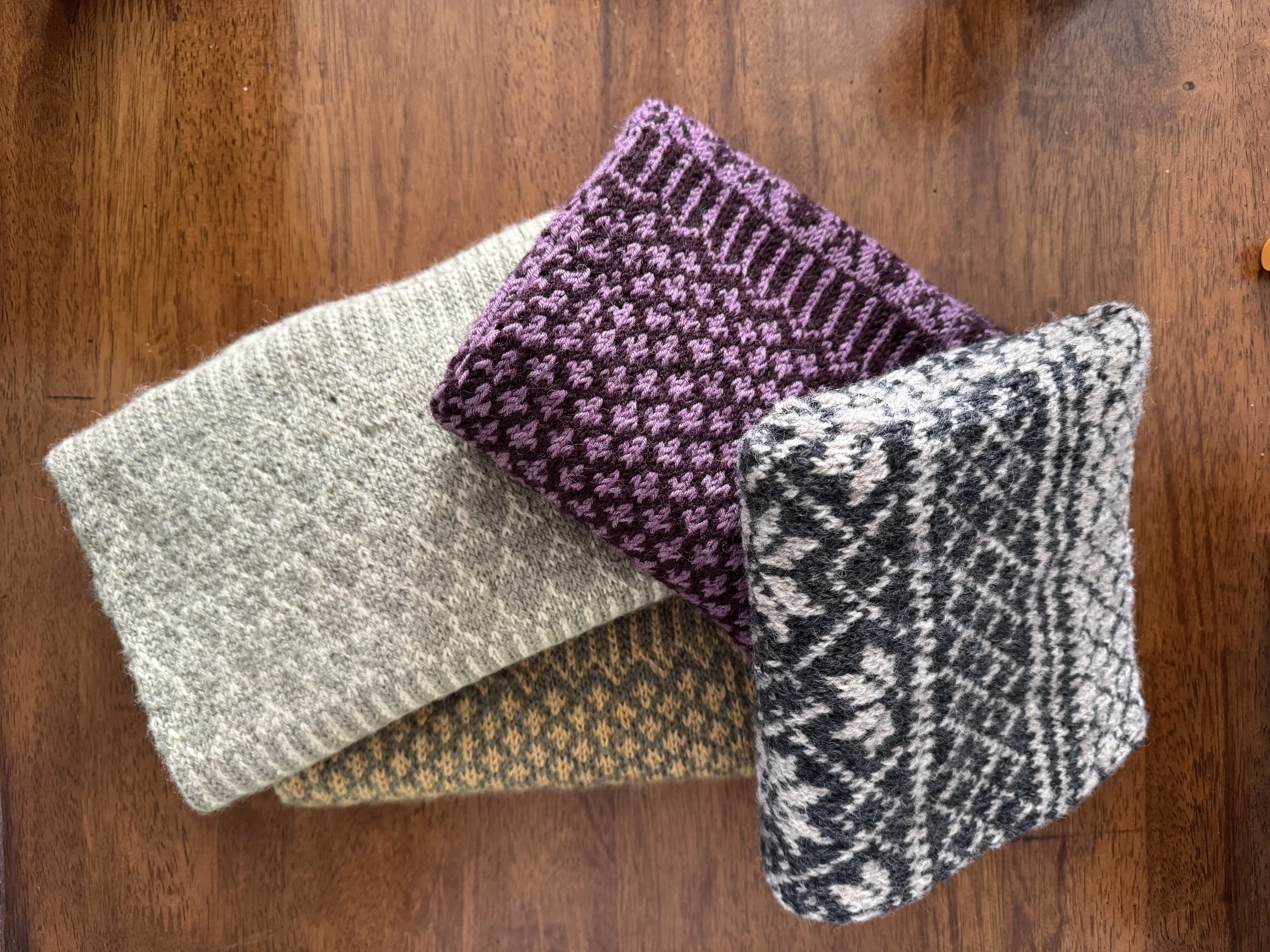 Hands two-strand mittens Mittens for Steve gloves Feet using up sock yarn colorwork socks socks with plant-dyed yarn Heads (and necks) hearts ribbed hat with five decreases CABLED HAT tank top/undershirt cowl in double moss stitch stranded cowls Home Mats for clean dishes or hot pansPotholders