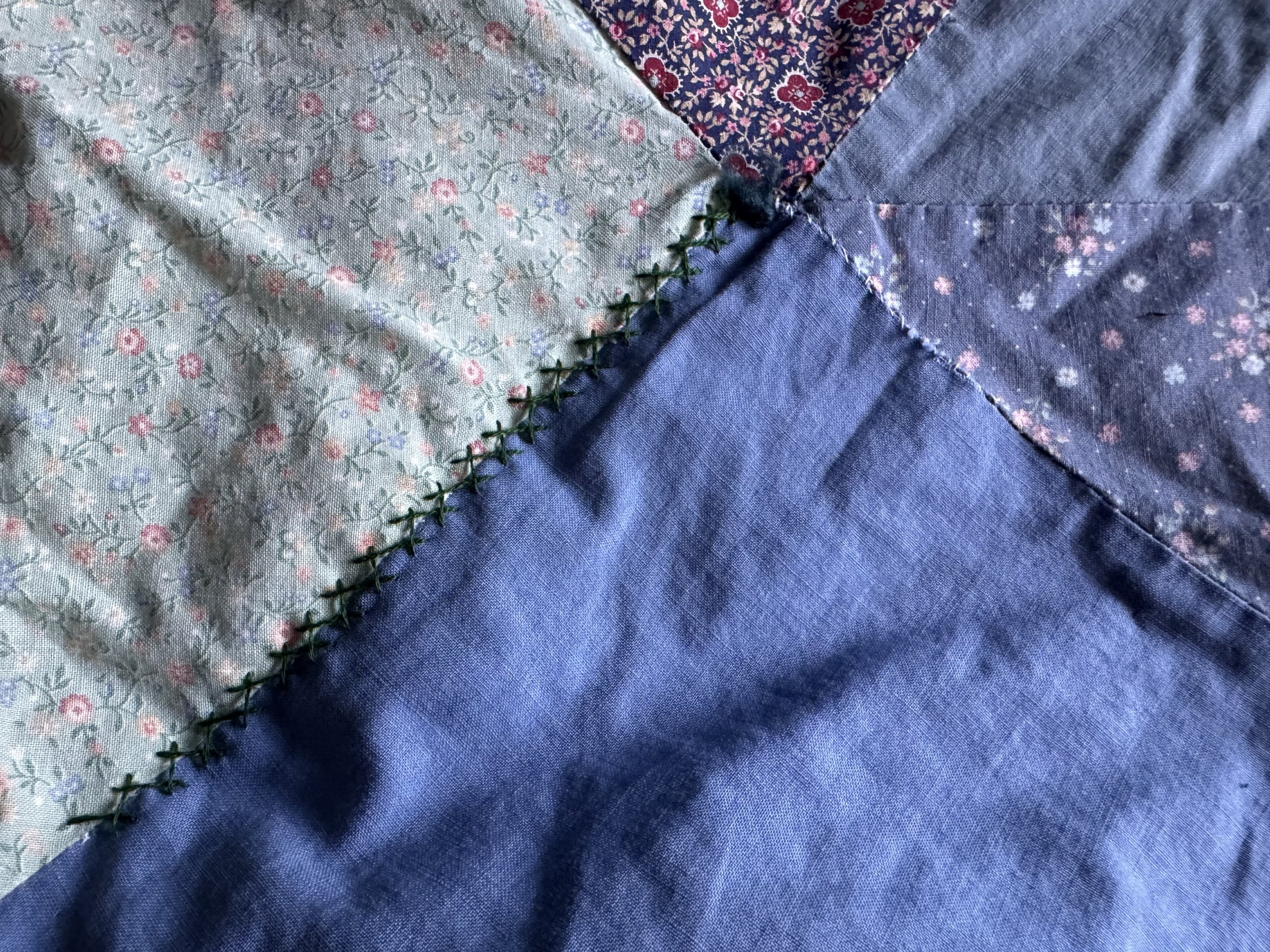 Some of the fabric in this quilt is as soft and fragile as tissue paper, and there are quite a few seams that want mending, but I will leave that until after I have replaced the binding.