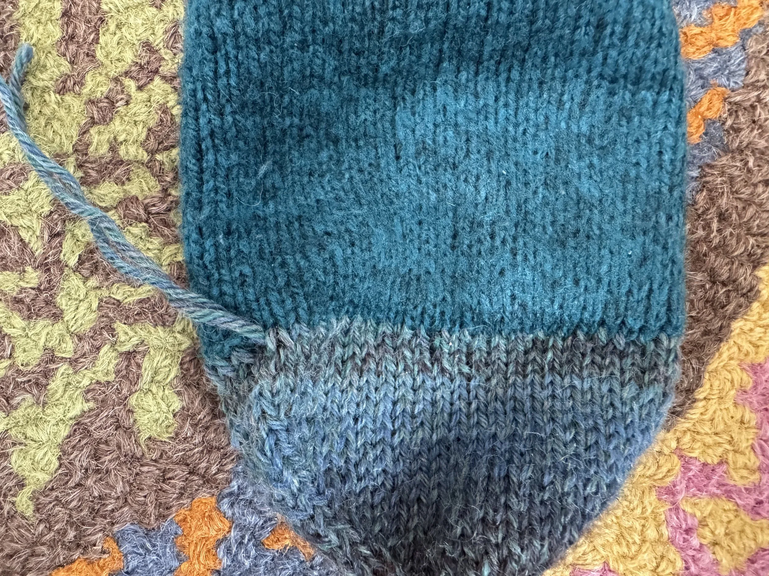 There are some extra threads here. I think they were threads that I wove in when I first made the sock.