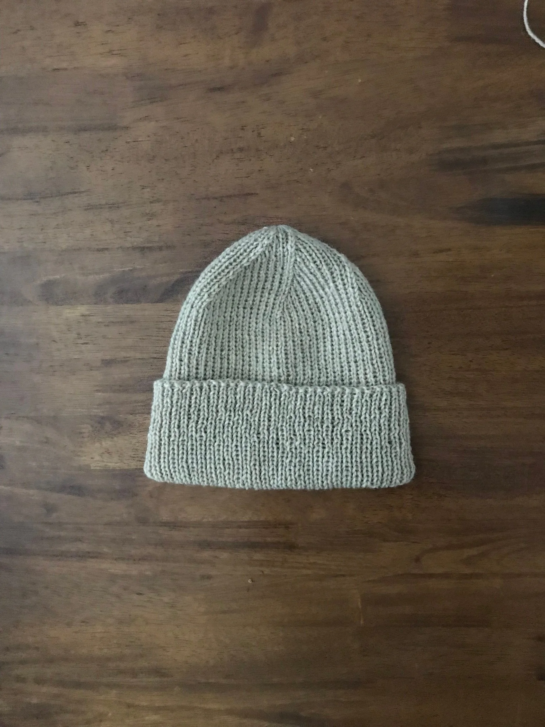 I finally realized why the first two or so inches of this hat look so wonky! I started a project last year but never got past the first few rows, and then unraveled and reknitted the yarn without washing it. So now you can see how important it is to use balanced yarn when you knit! The knitting should even out pretty well when I wash the hat.